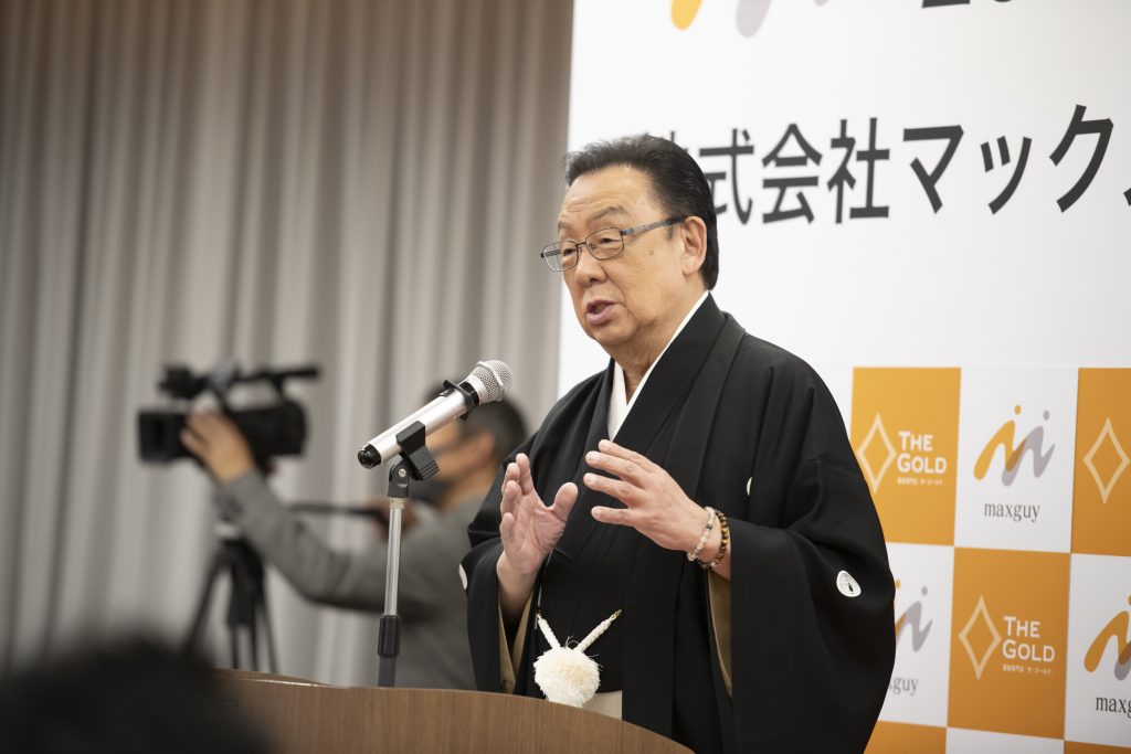 入社式終了後には、買取専門店「ザ・ゴールド」のイメージキャラクターを務める梅沢富美男さんがサプライズで登場。新入社員の皆さまへの祝辞をいただいた後、梅沢富美男さんと新入社員のトークセッションを開催いたしました。
